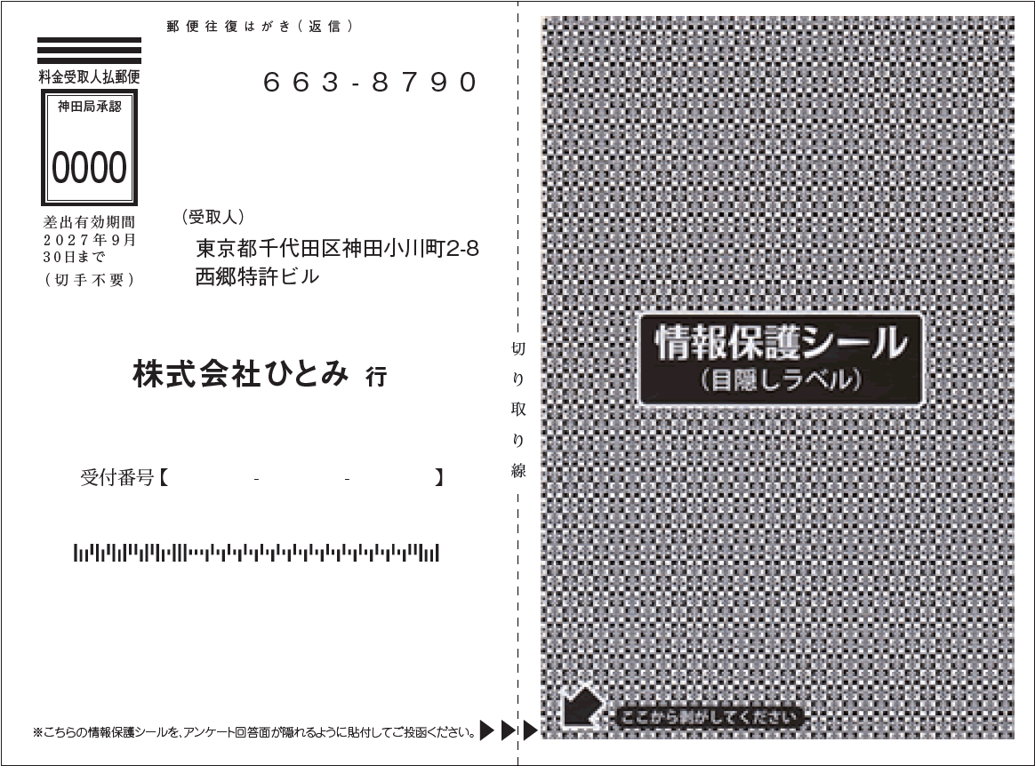 さらに安心感を高めたい場合には、情報保護シールを併用するのが有効です。シールを使うことで「きちんと守られている」という印象を与え、回答率の向上にもつながります。