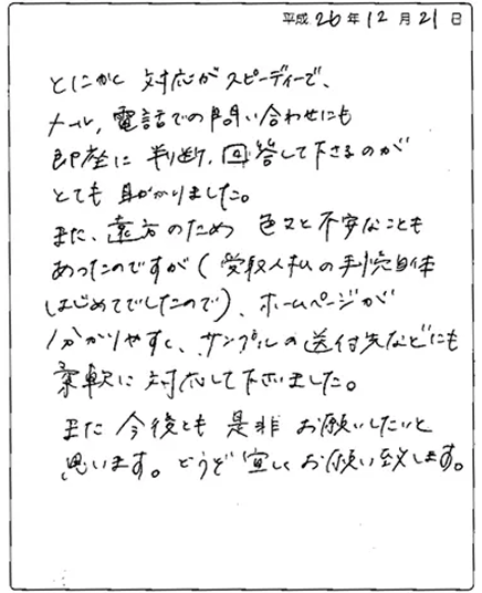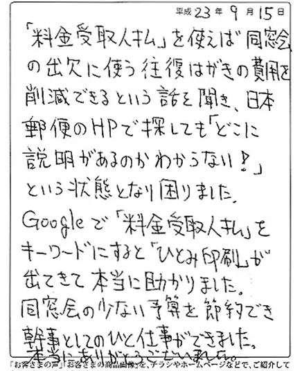 料金受取人払い印刷をご利用いただいたお客様から、「迅速で丁寧」「不安が解消できた」「費用削減につながった」という声が多数寄せられています。そのご評価の一部をご紹介いたします。