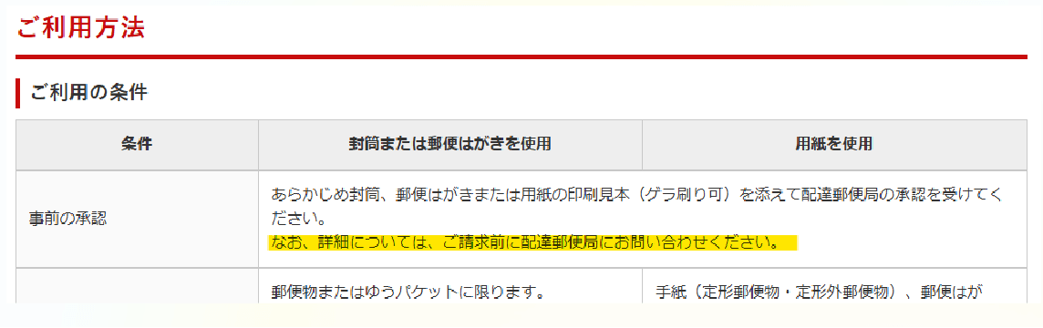 最寄りの郵便局へ電話しましたが、受取人払いの承認作業は管轄の大きな郵便局で行っている為、そこへ問い合わせをお願いされる。郵便局HPに記載の、受取人払い関連で承認以外の疑問点について伺うが、それもわかりかねますとの事で回答は得られずでした。対応はとても親切でしたが、どうやら受取人払いについては近くの小さな郵便局では回答はできないみたいです。