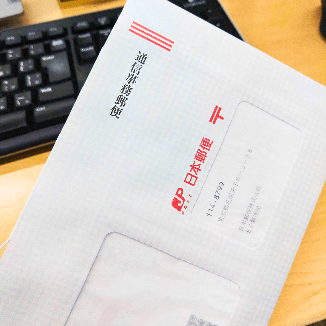 担当の郵便局宛てに書類を投函しました。 通常、行政とのやりとりだと必須である切手を貼った返信用封筒とか入れなくていいのかな?と思いましたが、不要でした。 「通信事務郵便」という郵便局ならではの特殊な形で後日審査結果が届きました。