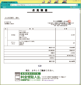 お見積り書が表示されます。先ほど入力したメールアドレスへお見積りのメールが送られますので、併せましてご確認ください。