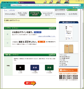 価格表・注文ページが開きます。 「デザイン(縦書き・横書きなど)」を選び、「選択する」ボタンをクリックください。