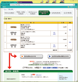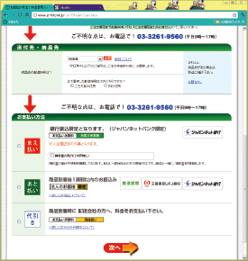 お届け先の都道府県と、お支払い方法を選びます。選択後、「次へ」をクリックして下さい。