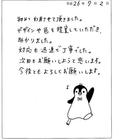納品までの間、やりとりに多少のお時間を要してしまいましたが、