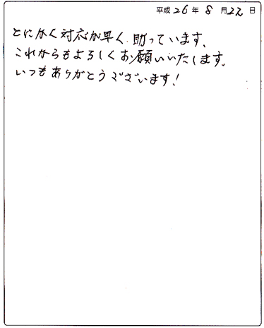 また何かございましたら、ぜひお気軽にご相談ください。今後ともどうぞよろしくお願いいたします。