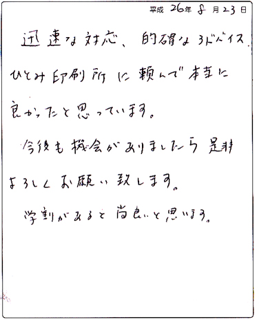 このたびは当印刷所をご利用いただきまして、