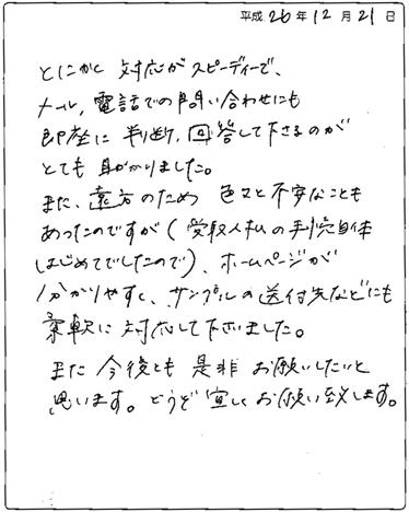 また今後ともぜひお願いしたいと