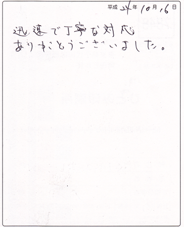 迅速でご丁寧な対応ありがとうございました。