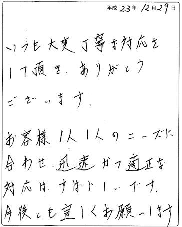 いつも大変丁寧な対応をして頂き、ありがとうございます。