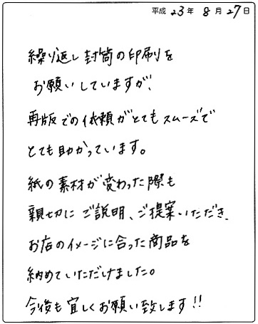 ネットで料金受取人払いの封筒を作ってくれるところを探していた時に知りました。