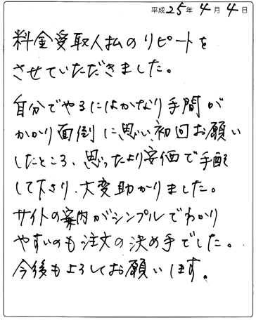 かかり面倒に思い、初回お願い